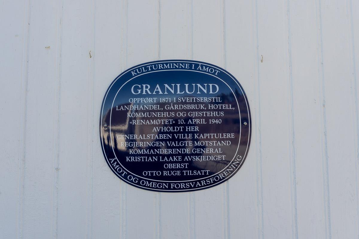Skiltet markerer en av de mest dramatiske og avgjørende hendelsene i norsk krigshistorie: Renamøtet 10. april 1940.