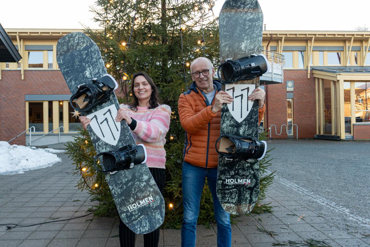 Helena Johnsen og Knut Mikkelsen ble trukket som vinnere av hvert sitt snowboard.