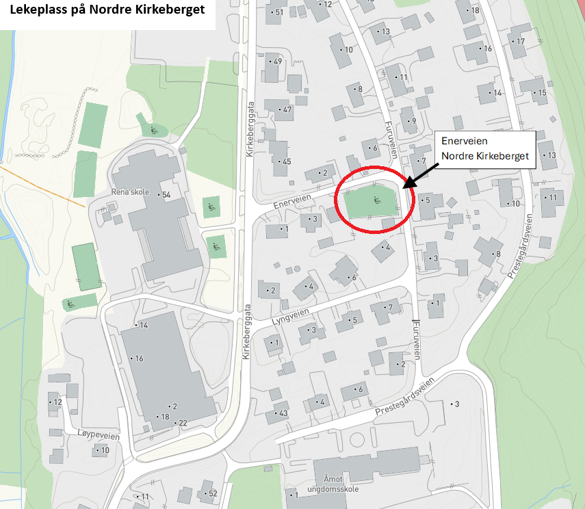 Oversikt over lekeplasser på Nordre Kirkeberget. Totalt 1 lekeplass.Melding om interesse