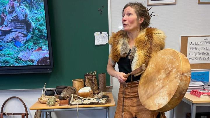 3. og 4. trinn har hatt besøk av to veldig engasjerte "steinalder"-folk i regi av den Kulturelle skolesekken.