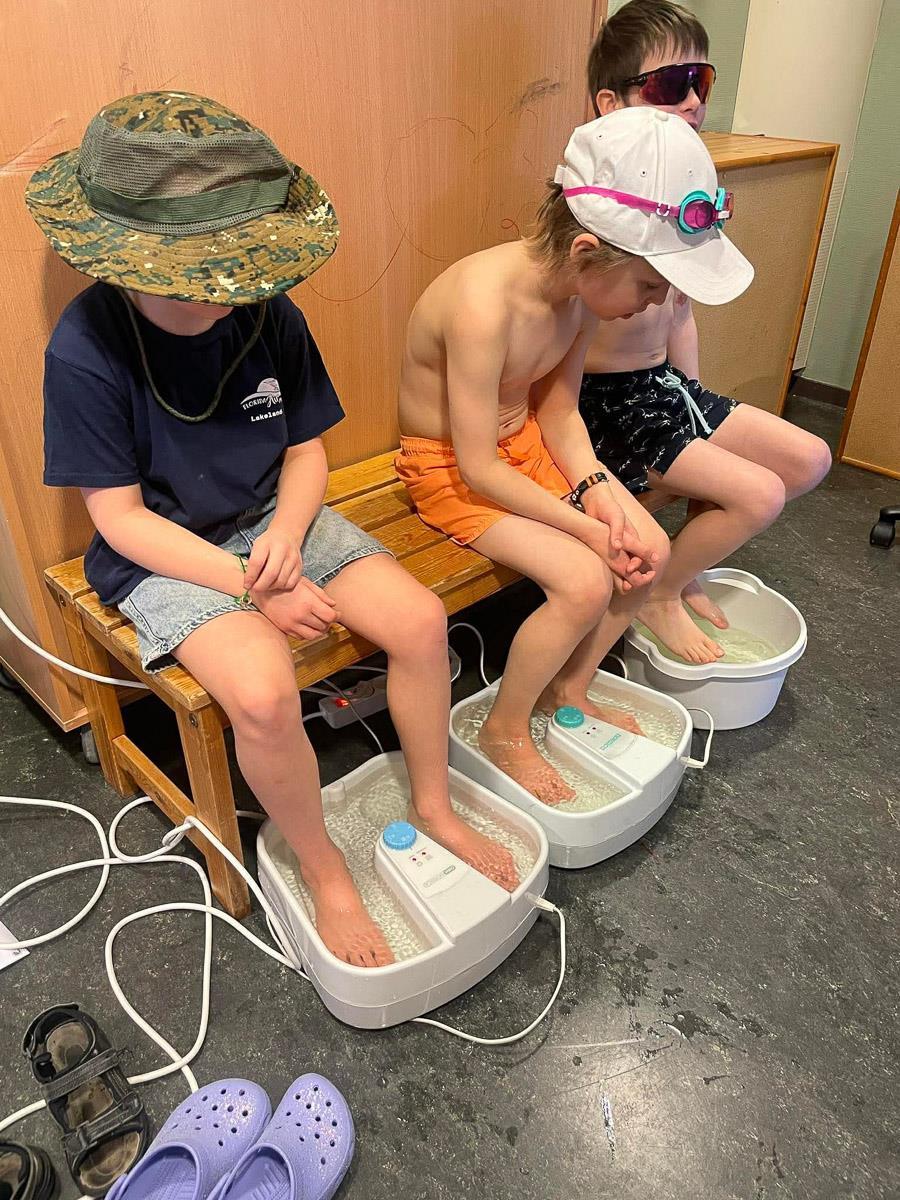 Alle skrev kort hjem og fortalte hvor flott de hadde det. Det var også flere som besøkte spa avdelingen, hvor de tok fotbad og fikk massasje.