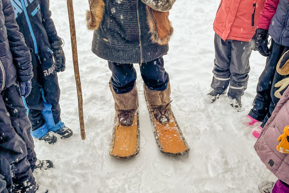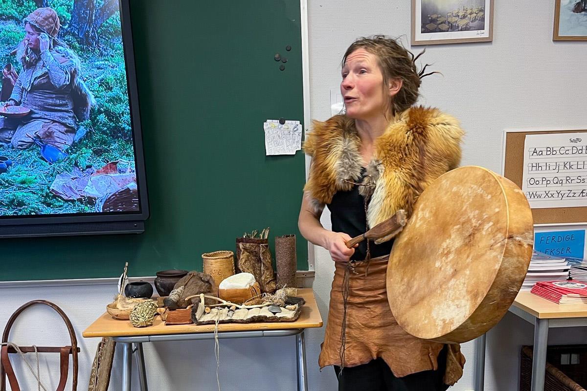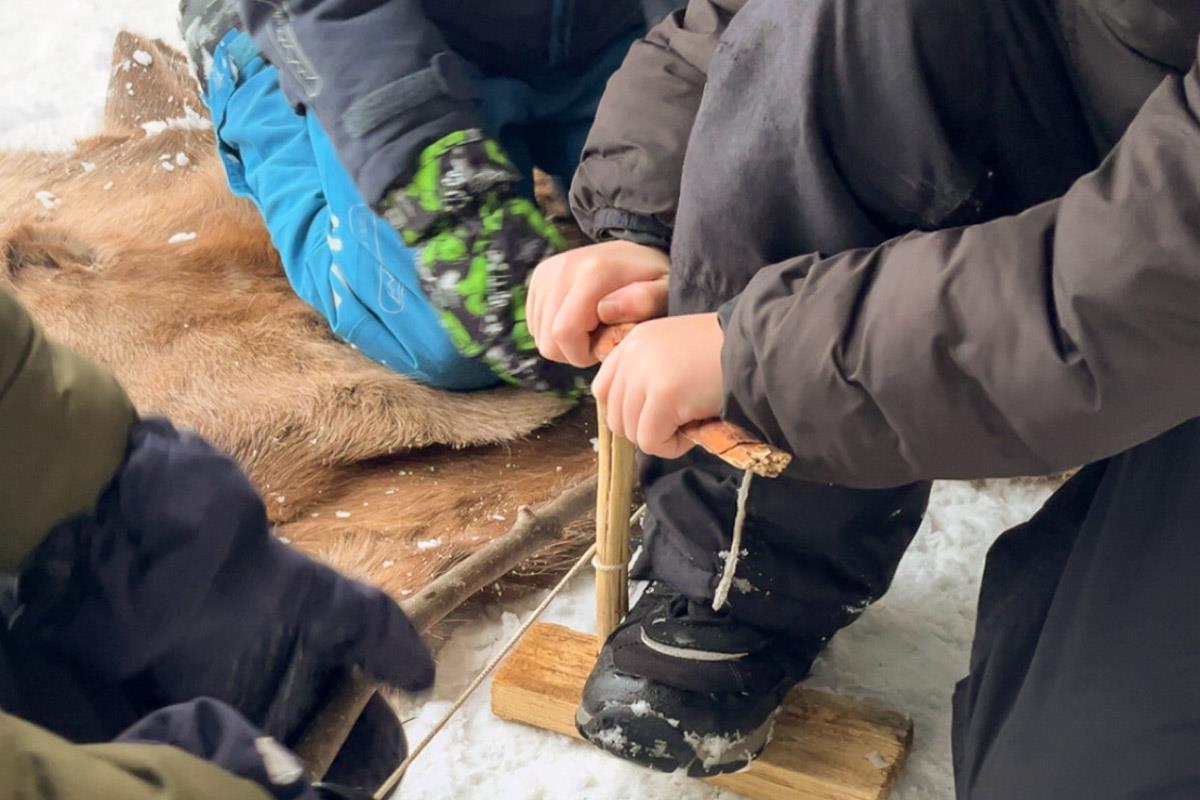 Med dette som inspirasjon fikk elevene delta på et praktisk verksted hvor de fikk lære å lage ild, bruke råmaterialer fra naturen og lage noe av skinn.