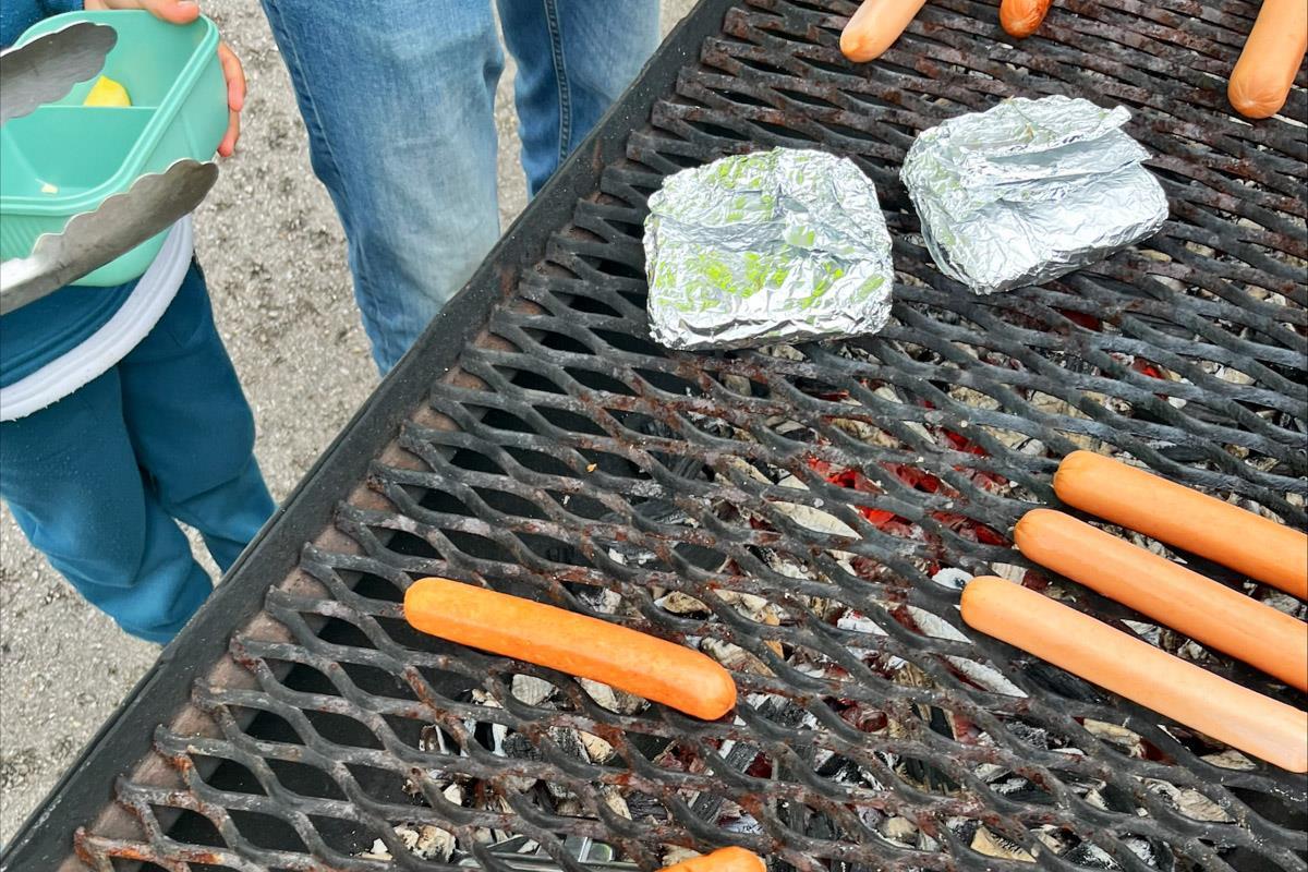 Det er også hyggelig å runde av før høstferien med grilling av pølser til lunsj.