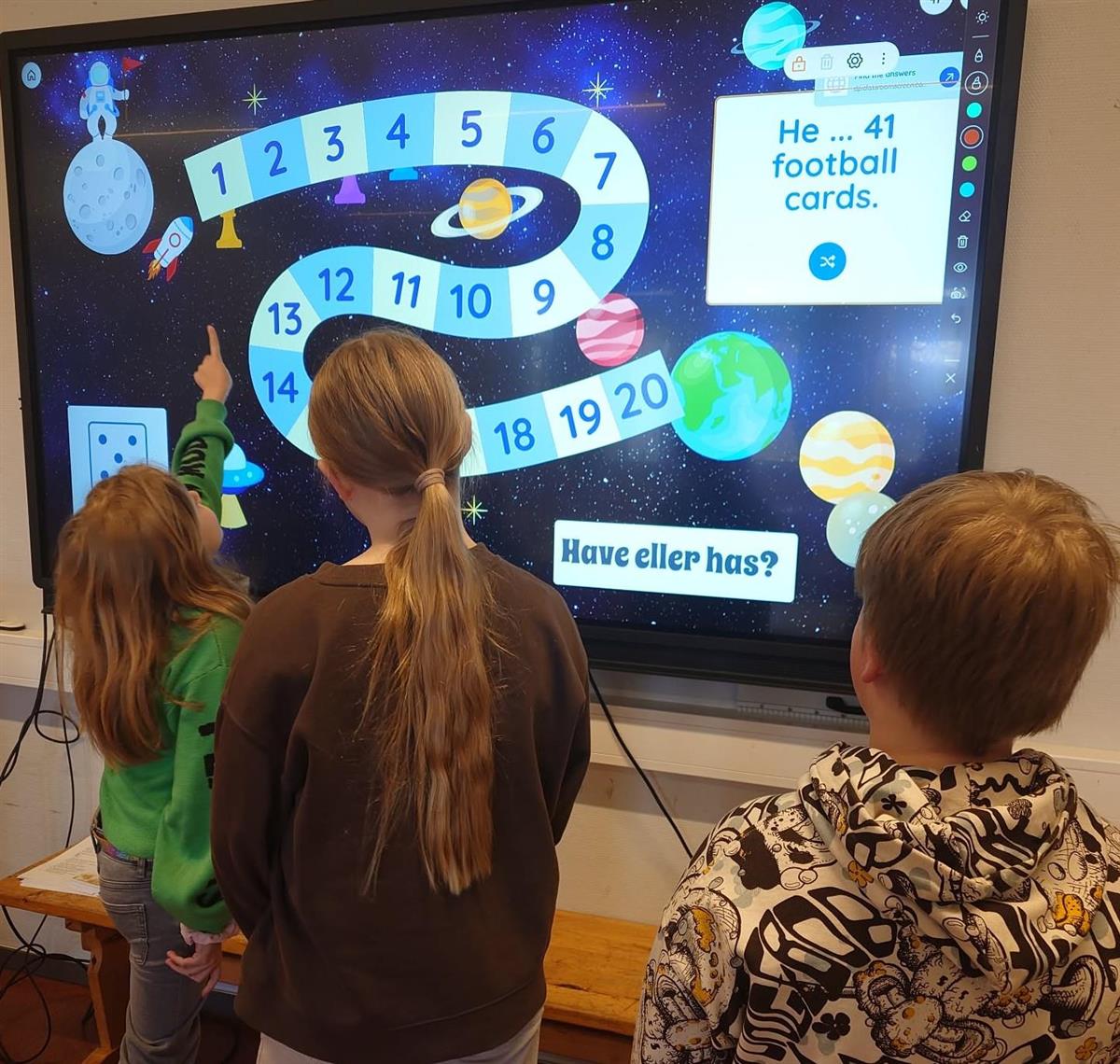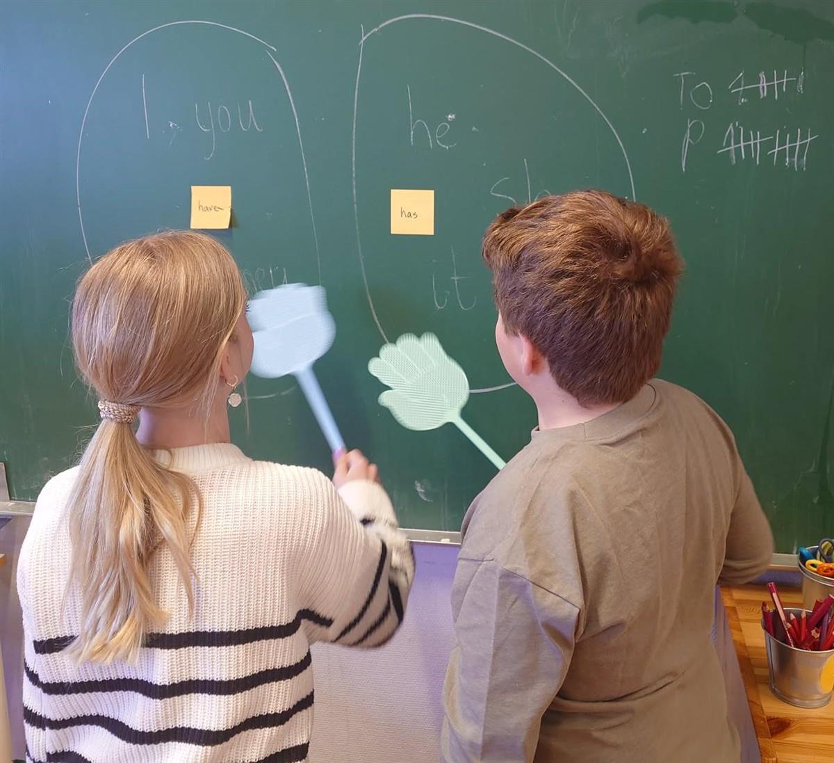 FluesmekkeraktivitetElevene øvde på bruken av has og have, gjennom blant annet fluesmekkeraktivitet, digitalt spill på storskjermen i klasserommet og oppgave med fisking.